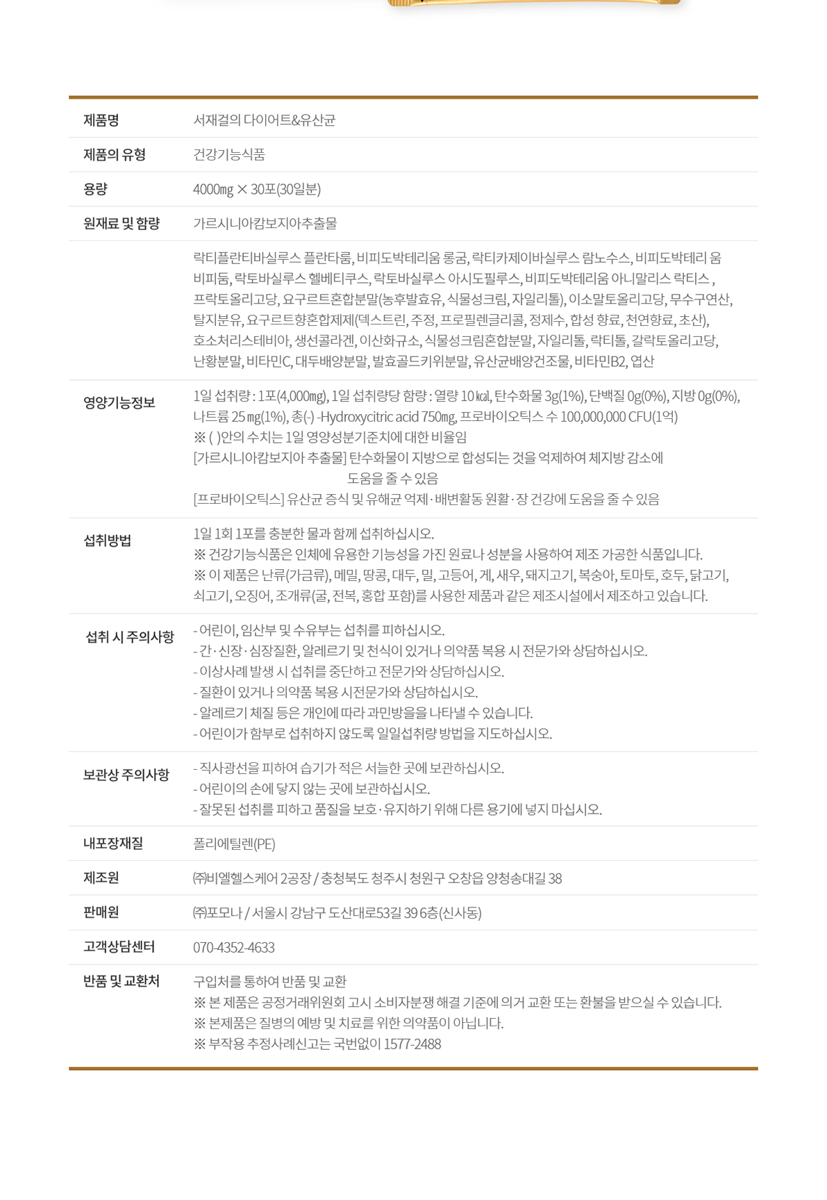 서재걸의 다이어트&유산균 1BOX (30포/30일분)